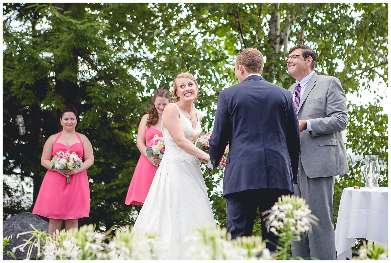 I always love the little details that make each wedding unique. For this wedding, that included the loon centerpieces, the canoe filled with wine, and the guest log which was an actual log.